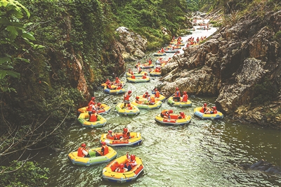 游客在五指山市红峡谷漂流。五指山市委宣传部供图