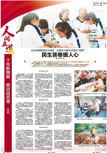 悠悠万事,民生为大。一个个亮眼的数据,正是定安人幸福指数节节攀升的有力见证。从小处着手,不断将发展成果转化为民生福祉,党的十八大以来,定安对民生的追求,不仅体现在日新月异的城市建设中,更洋溢在每位群众幸福的笑脸里。