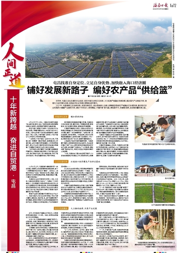 屯昌县农业农村局相关负责人介绍,今年来,屯昌在抓好耕地“非农化”、“非粮化”工作的基础上,立足便捷的交通优势和综合成本低、农业产业承载空间大等比较优势,发动农民种植粮食和当地特色农产品,动员农产品企业在屯昌生产加工农产品,再运往琼北消费,打造海口经济圈的农产品“供给篮”。