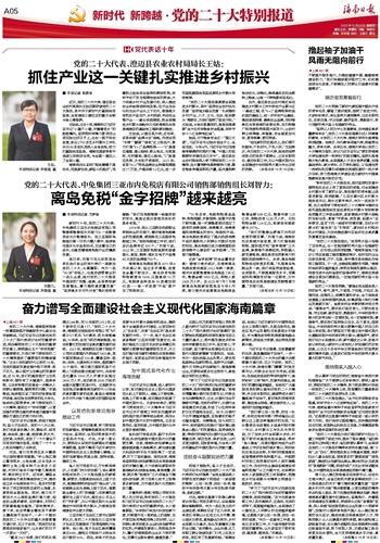“党的二十大报告指出,‘党用伟大奋斗创造了百年伟业,也一定能用新的伟大奋斗创造新的伟业’。这句话让我深受鼓舞。”海南欣城电力设计公司总监理工程师曹鹏波表示,他所在的企业目前在琼海、万宁、屯昌、琼中等市县实施系列电网工程项目,下一步,会继续拓展服务范围,“海南的电网项目越来越多,表明自贸港发展势头强劲,相信在党中央和省委的坚强领导下,海南自贸港建设会更加行稳致远,一定能用新的伟大奋斗创造新的伟业。”
