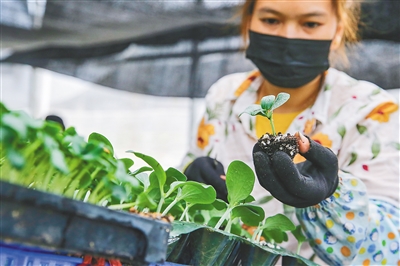 10月18日,农户在对青瓜苗进行嫁接。 本报记者 王程龙 摄
