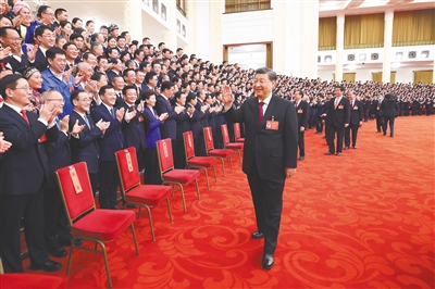 10月23日下午,中共中央总书记、国家主席、中央军委主席习近平等领导同志在北京人民大会堂亲切会见出席党的二十大代表、特邀代表和列席人员,并同大家合影留念。 新华社记者 鞠鹏 摄