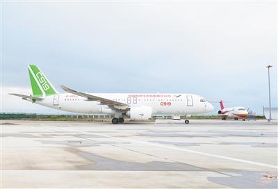 2022年7月20日在山东东营拍摄的C919大型客机第七架机。新华社记者 丁汀 摄