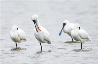 黑脸琵鹭栖息在海南昌江海尾国家湿地公园(试点)。 海南日报记者 李天平 摄