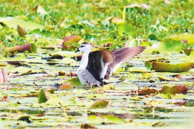 “太惊喜了,这说明紫水鸡已经非常安心地在湿地栖息繁殖了。”薛美丽介绍,目前该湿地公园的鸟类已经增加到了175种,越来越多的新物种来这里安家落地。