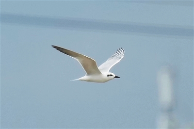 “快快快!”昌江爱鸟队队员文公最先发现,拉着队友郭能为“咔嚓”拍下了这位有些面生的“新朋友”。“是鸥嘴噪鸥,湿地物种又‘加新’了。”文公将照片传回昌江爱鸟队微信群时,队员任荣霞即刻认出来。