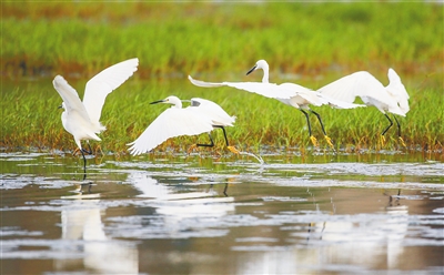 小白鹭在海南昌江海尾国家湿地公园(试点)觅食。海南日报记者 李天平 摄