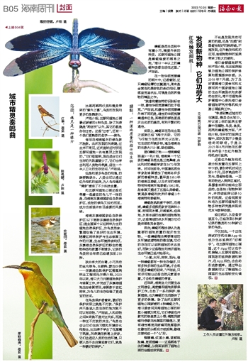 每年在海南越冬的候鸟数不胜数。此次发现的灰燕鵙,过去并不常见,这次是附近村民在五源河湿地一处电塔顶上发现的。“它们很聪明,现在适合它们生存的天然崖壁少了,它们也学会利用人类物件筑巢,诞生一个半人工化的生存空间。”卢刚说。