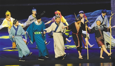 结合历史事实,话剧《海外东坡》中还融入了儋州调声、黎族歌舞等海南非遗文化,丰富了话剧艺术的表现形式,增强了观赏性。此外,赵德旭还透露,《海外东坡》首演时还设置了一个环节:邀请观众在演出中,与台上演员一同演唱黎族传统“世亲调”,穿越时空,为东坡送行。