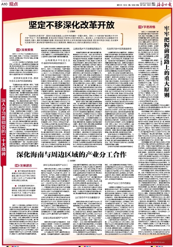 在产业分工定位上,充分发挥海南自贸港全面深化改革和试验高水平开放政策的优势,加快集聚全球人才、创新、金融等要素,在与周边区域分工合作中,重点发展产业的中高端环节。