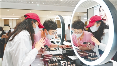 顾客在选购免税美妆商品。本报记者 张茂 摄