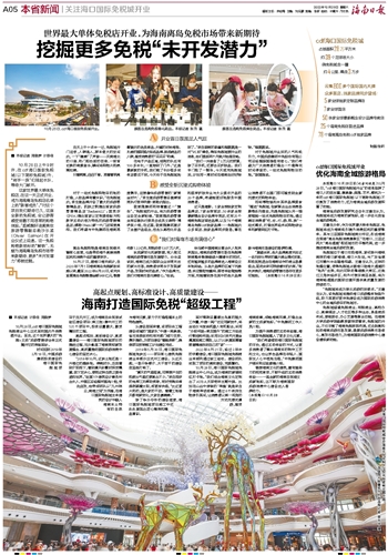 cdf海口国际免税城结合海南文化定制AURA天际密林主题中庭。 本版图片除署名外均由本报记者 李天平 摄