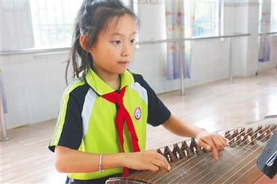 ⑥海口市灵山镇中心小学八音队的学生在弹奏古筝。