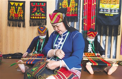 ②黎族传统纺染织绣技艺代表性传承人刘香兰。