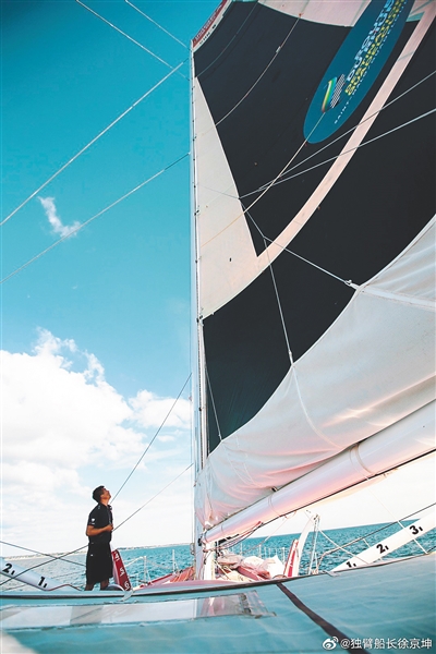 徐京坤驾驶帆船远航。本版图片均由采访对象提供