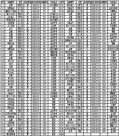 我县在2022年4月1日至2022年9月30日期间在澄迈县各乡镇执法检查过程中查处到涉嫌违法装载河砂的车辆及机具。因车辆和机具的所有权人不明,从本公告发布之日起一年内,请公告清单列表上的所有车辆和机具的所有权人携带个人身份证及其他证明车辆、机具来源材料到澄迈县综合行政执法局1楼县“多规合一”管控行政执法大队办理认领登记手续。逾期未认领的,我局将依法移送相关部门进行无主物的财产处置。办公室电话:0898-67615217,地址:海南省澄迈县金江镇金马大道党校一楼。澄迈县综合行政执法局 2022年11月3日