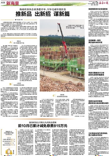 连日来,海南农垦各企业面向市场发力推新品,在项目建设、产业发展上频频出新招,统筹兼顾抓落实,聚焦重点找突破,全力以赴冲刺今年各项经营目标任务。