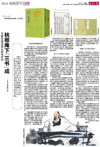 所谓“海南三书”,指的是苏轼晚年谪居儋州期间最终完成的《东坡易传》《东坡书传》及《论语说》。这三部著作,是对儒家经典《周易》《尚书》和《论语》的注解与疏证。在解经风格上,苏轼既受道家的影响,又能较好地切合现实。