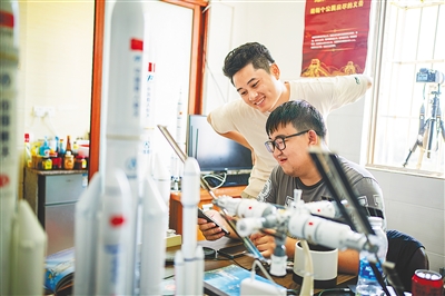 王禹博(右)和晏泽华将办公地点设在文昌市龙楼镇,以便专心拍摄火箭发射,宣传科普航天知识。