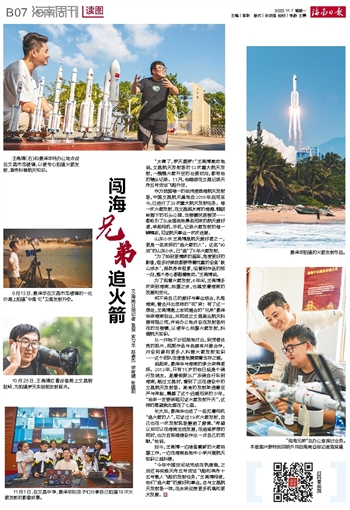长大后,晏泽华也成了一名扛着相机“追火箭的人”,见证过19次火箭发射,自己也在一次发射现场邂逅了爱情。“希望以后可以在海南生活发展,在追逐梦想的同时,也为自贸港建设作出一点自己的贡献。”他说。