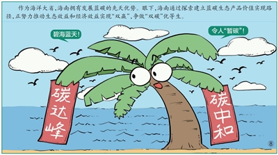 今年5月31日,我省首个蓝碳生态产品交易完成签约,这是我省蓝碳资源价值转化的实质性突破,标志我省在推进海洋生态保护和应对气候变化制度创新方面迈出新步伐,并为国家探索建立健全生态产品价值实现机制提供了海南方案。