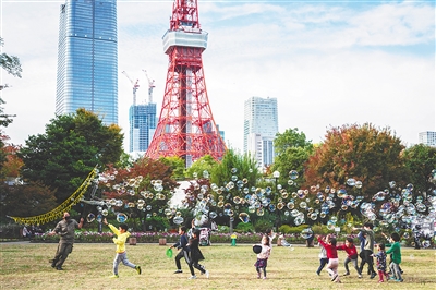 这是11月10日在日本东京拍摄的正在玩耍的小朋友。
