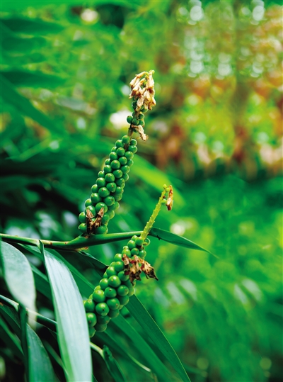 开车驶入乌坡镇的林间小道,在道路两旁不时可以看到当地农户栽种的益智、牛大力等。春砂仁散布于山岭间,朴野之气十足。罗冠雄指着窗外对海南日报记者说:“这些春砂仁都是当年村民从药材场引种,然后一步步散播开的。”