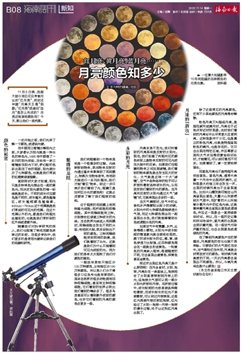 文\本刊特约撰稿 沈滔11月8日晚,我国大部分地区可见带食月出的“红月亮”,同时还伴随“月掩天王星”现象。“红月亮”或者说“血月”是怎么形成的?月亮还有其他颜色吗?今天,就让我们一探究竟。
