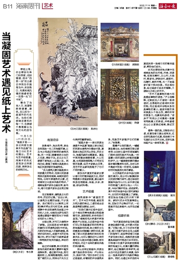 11月5日—11月20日,“画里乡音——琼北民居古建美术作品展”在海口898艺术村展出。艺术与艺术相碰撞,用美术的形式呈现琼北民居风貌,映照琼北的独特文化。