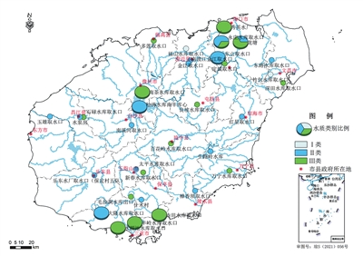 全省地表水水质总体为优,193个省控监测断面(点位)的水质优良(Ⅰ~Ⅲ类)比例为93.3%,同比上升8.4个百分点;劣Ⅴ类比例为0.5%,同比下降1.1个百分点。19个市县中,文昌市水质轻度污染,东方、儋州、琼中等3个市县水质良好,其余15个市县水质为优。