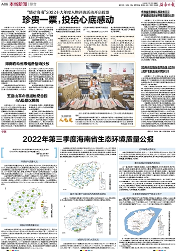 根据《中华人民共和国环境保护法》有关规定,现发布《2022年第三季度海南省生态环境质量公报》。海南省生态环境厅