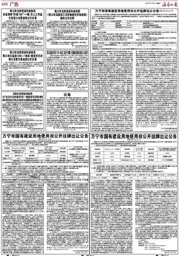 五、挂牌报价时间及地点:(一)本次交易活动挂牌报价竞价环节采取线下方式进行,获得竞买资格的竞买人应按挂牌出让手册的具体要求参与报价竞价活动。挂牌报价阶段仅接受书面报价,不接受电话、邮寄、电子、口头等其他方式报价。挂牌截止由挂牌主持人主持确定。(二)挂牌报价时间:2022年12月5日8:30至 2022年12月15日9:30,受理报价时间为北京时间工作日8:30至11:30及14:30至17:00。(三)挂牌报价地点:万宁市自然资源和规划局办公大楼用途管制和耕保组。(四)挂牌现场会地点:海南省公共资源交易服务中心二楼土地矿产资源交易厅(203室)。