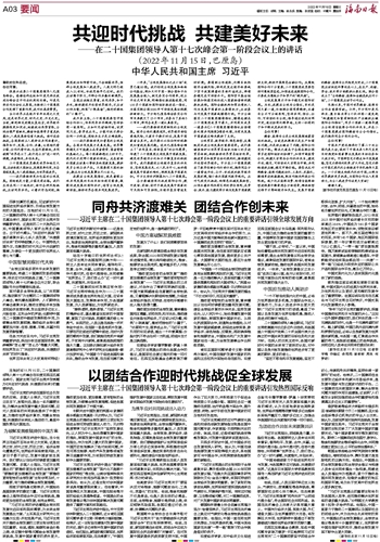 “习近平主席提出的主张有助于全球凝聚共识、携手落实联合国2030年可持续发展议程。”在澳大利亚国际事务研究院院长艾伦·金吉尔看来,实现可持续的全球经济发展非常重要。除了紧张的地缘政治局势,世界面临的更深层挑战来自气候变化、环境保护等方面。有效应对能源、卫生等领域问题,对二十国集团成员、对广大发展中国家来说非常重要。