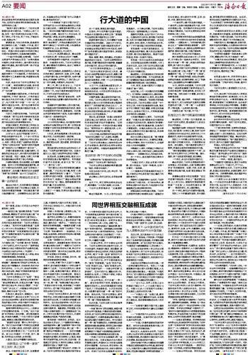 ——这是立场的宣示,也是共识的凝聚。“共同确保中美关系沿着正确航向前行,不偏航、不失速,更不能相撞”“中澳之间从来没有根本利害冲突”“中国不干涉别国内政,也不接受任何人以任何借口干涉中国内政”“和平是中国最执著的追求,中国历史上没有、现在没有、今后也不会谋求霸权”“反对将经济合作政治化、泛安全化”“我们要将发展置于国际议程中心位置”“我们必须以人类前途命运为重,同舟共济,共克时艰”……在大变局的时代,如何探讨国与国正确相处之道、怎样维护国际合作正确方向,国际社会从中国与世界的互动中汲取思想的启迪。