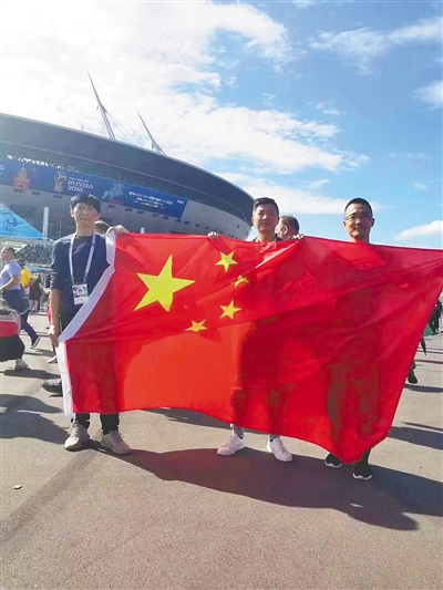 李德斌跟球友一起带着国旗去俄罗斯看世界杯。