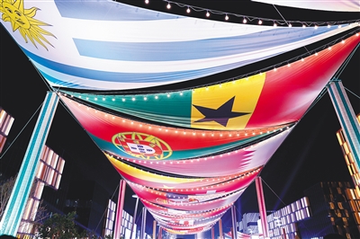 卡塔尔卢塞尔大道上的各参赛国国旗。新华社