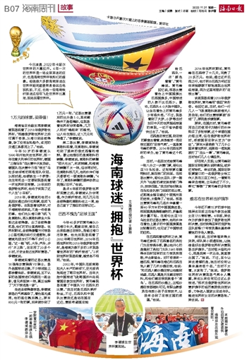 文\海南日报记者 王黎刚今日凌晨,2022年卡塔尔世界杯的大幕拉开。4年一次的世界杯是一场全球球迷的狂欢,也是海南世界杯铁粉们的盛宴。相信绝大多数海南球迷在世界杯期间都要熬夜奋战在电视机前,不过,也有一些海南铁杆球迷这些年飞赴世界杯比赛地,现场观看世界杯。