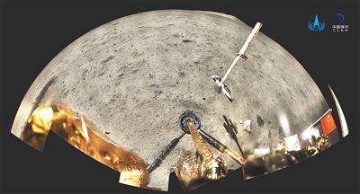2020年12月4日,国家航天局公布探月工程嫦娥五号探测器在月球表面国旗展示的照片。 新华社发(国家航天局供图)