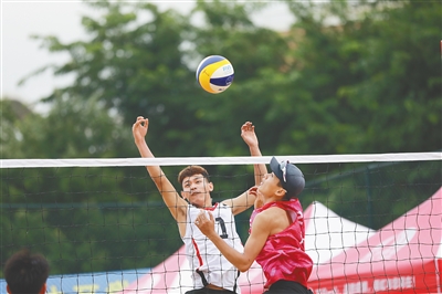 11月24日,省第六届运动会沙滩排球比赛在洋浦中学正式开赛(左图)。该项目比赛将持续到12月1日。
