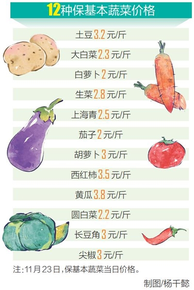 本报三亚11月24日电(记者周月光)为做好疫情期间及旅游旺季蔬菜保供稳价,从11月23日起至明年1月3日,三亚市政府“菜篮子”平价网点启动12种保基本蔬菜应急投放,加大农贸市场价格调控力度。这是海南日报记者从三亚市发改委(市稳价办)获得的消息。三亚此次应急投放的12种保基本蔬菜是土豆、大白菜、白萝卜、生菜、上海青、茄子、胡萝卜、西红柿、黄瓜、圆白菜、长豆角、尖椒等。应急投放期间,三亚市发改委(市稳价办)在每天发布的调控价格基础上,政府“菜篮子”平价网点对这12种保基本蔬菜开展惠民活动,每斤低于调控价0.5元投放,而且敞开销售。
