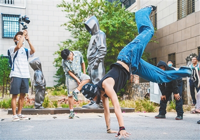 艺术青年群体在梅联社区里进行艺术展演。王将就 摄