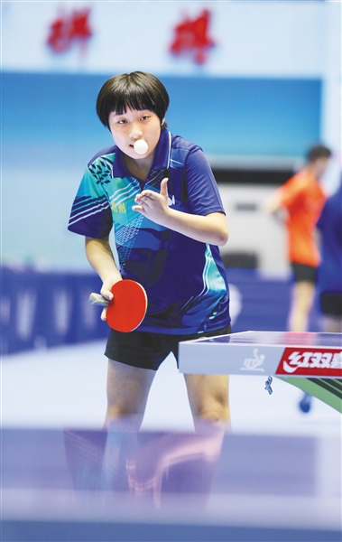 11月29日,在海南体育职业技术学院,报名参加省运会的乒乓球运动员抓紧备战。