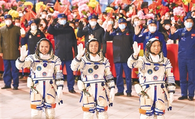 神舟十五号航天员乘组出征仪式在酒泉卫星发射中心举行