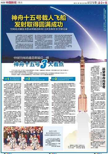 11月29日20时18分,神舟十五号载人飞行任务航天员乘组出征仪式在酒泉卫星发射中心问天阁圆梦园广场举行。