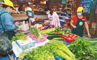 12月2日,在海口市龙华区城西镇城金农贸市场的菜篮子平价菜销售网点,蔬菜种类多样供应充足。