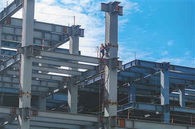 近日,俯瞰位于三亚湾畔的三亚合联中央商务区项目施工现场,一栋栋钢结构工程拔地而起。项目建成后将成为区域总部经济集聚区和国际旅游消费中心引领区。