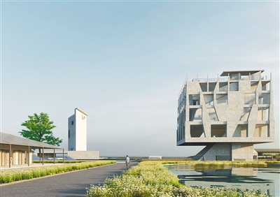 莺歌唱晚驿站的银山礼堂(右)和游客服务中心(左)效果图。