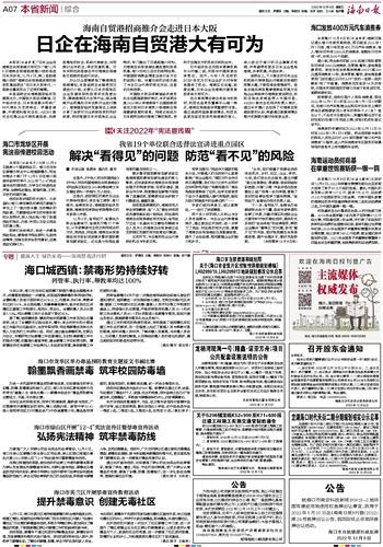 日中经济协会关西本部事务局长今村健二说,关西与中国贸易往来密切。此外,今年1月生效的RCEP协定为日本企业扩大对华贸易提供了机会。海南区位优越、政策优惠,日本企业在海南开展贸易投资将大有可为。