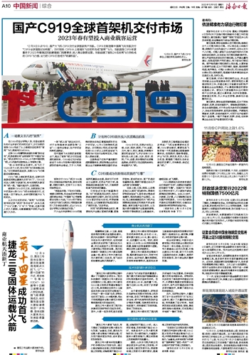从交付仪式的时间、“首秀”飞行的航班号到这架飞机的“身份证号”,处处凸显了“919”元素。“9”与“久”同音,这是中国人的久久期盼,也寓意着国产民机产业发展久久为功。