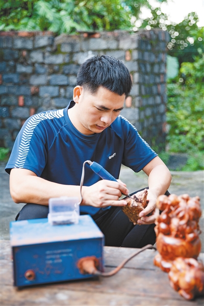 目前,美孝村从事根雕相关工作的村民有约40人。“要想学好根雕技艺,必须对这个感兴趣,还要能坐冷板凳。”如今,陈英贺也想和师傅一样,在村里收几个徒弟,通过师徒相承的模式将根雕技艺传下去。